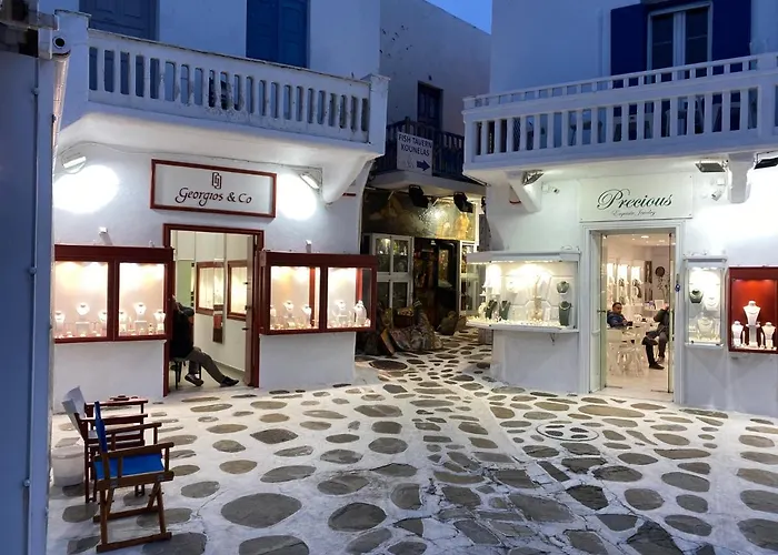 O Cozy Studio Mykonos Town de 33 m² está situado bem ao virar da esquina da Rua Matoyianni e a 5 km do aeroporto de Miconos. Os hóspedes podem usar Wi-Fi tanto para fins de negócios quanto de lazer.